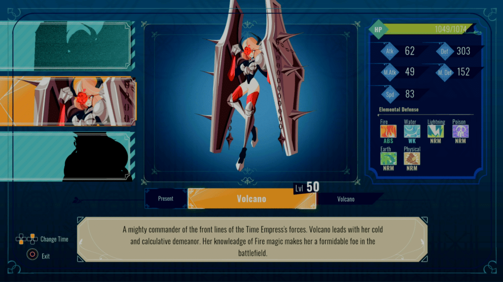 Crisbell is best doing her normal attack against Volcano. Since her time magic will just waste your turn, she really doesn’t have many other functions besides being more healing. As for Zas, try to use Magic Roulette against Volcano and hope for the best. Water and earth will do good damage against Volcano, lightning will do okay damage and fire will heal her. Landing on fire is something you want to avoid and keep in mind depending on her health.