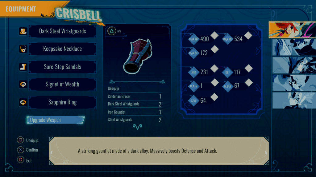 The most important thing is going to be consistent turn order and overall power. I also suggest giving Crisbell and Cristopher piercing keychains, as you should have two if you’ve done everything so far.