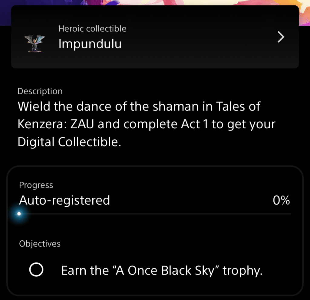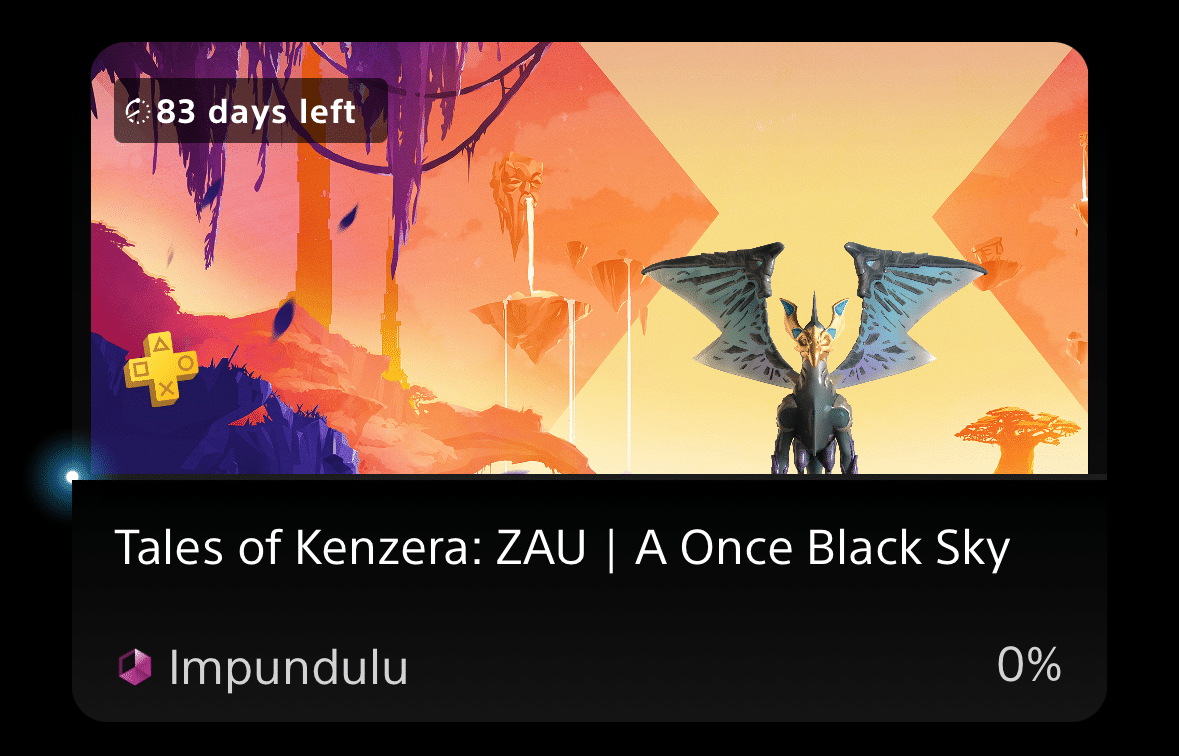 Players have 83 days to download Tales of Kenzera: ZAU, and complete the first act. Doing this will unlock A Once Black Sky trophy, along with a collectible of Impundulu. Based off comments on trophy sites this takes approximately 2 to 3 hours to complete. It’s also a pretty easy trophy list, with the platinum taking around 10 hours.