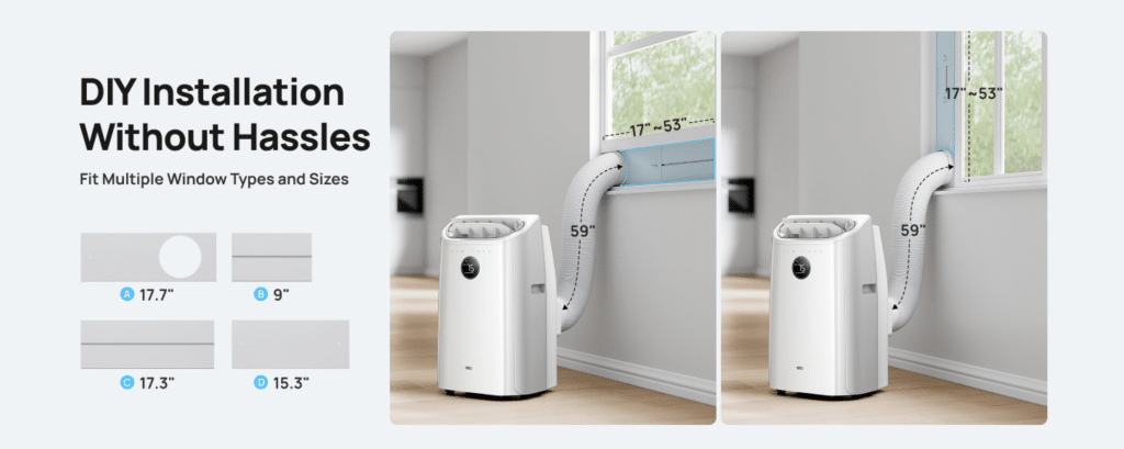 Hassle-free DIY Installation with Universal Window Kits: Don’t worry about the window type or size, this air conditioner for bedrooms features multiple panel combinations that are easy to fit and secure on any window (from 17″ to 53″)