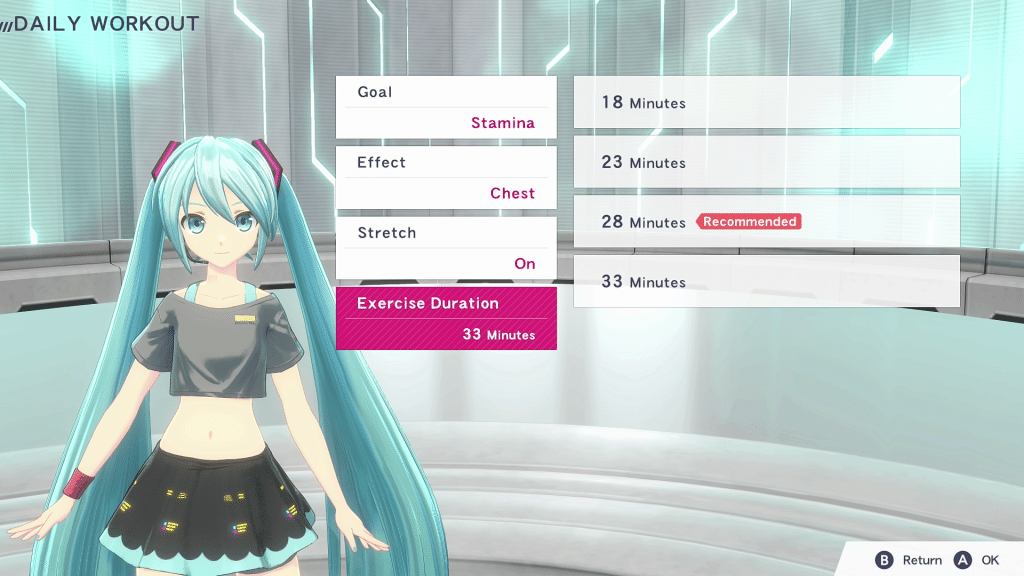 Anyone looking to take on a more active role can play Free Training. Here there are two options for stretching, Exercise, “Miku Exercise,” and even two player if someone wants to join in.
