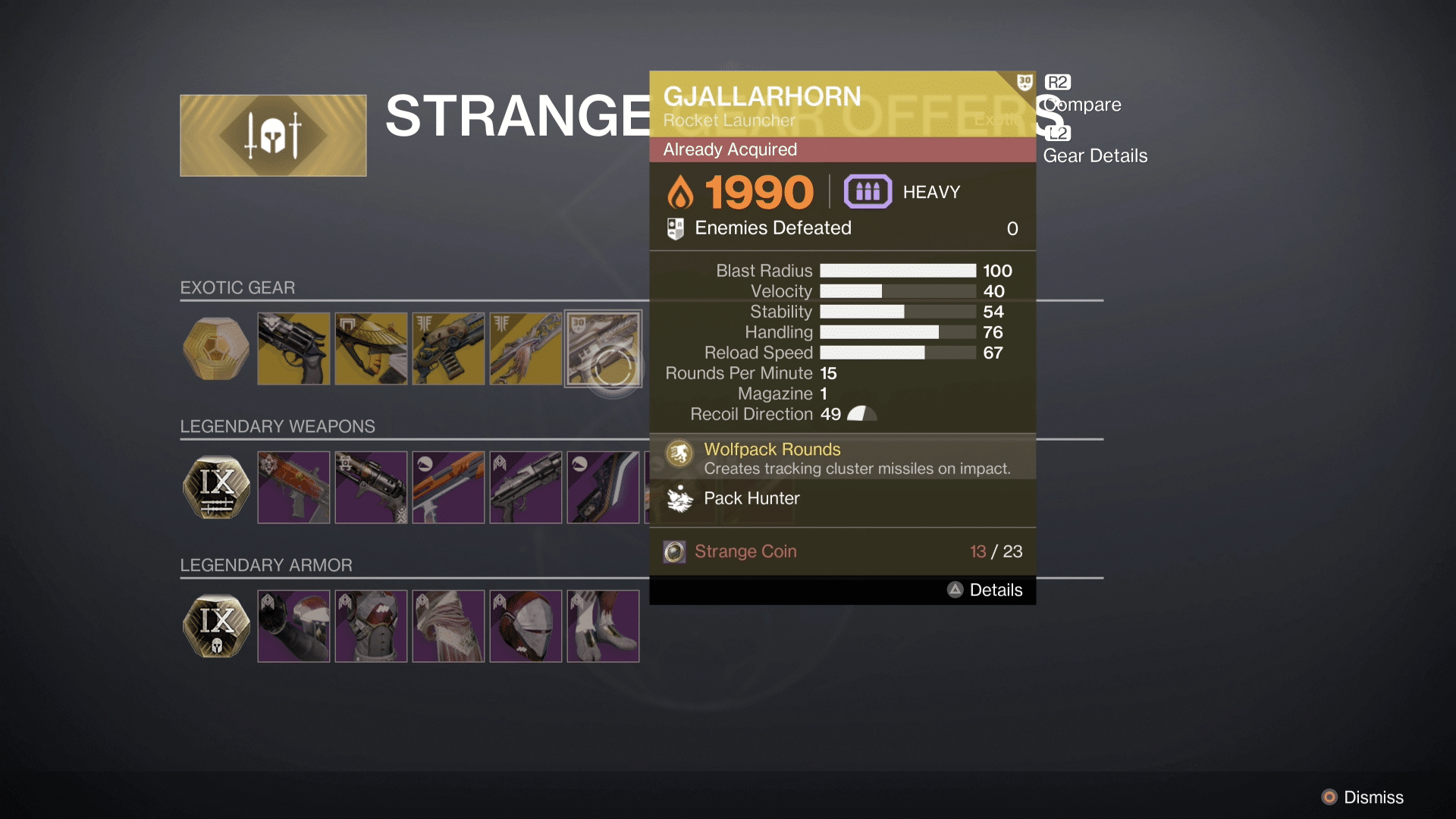 The choice to sell Gjallarhorn makes sense, as Sept. 20, 2014 was the infamous day where Xur sold Gjallarhorn. Thew weapon, which would go on to be the meta defining year one exotic, was considered a meme weapon. The most common belief being a heavy exotic was a waste, since you’d use it the least.