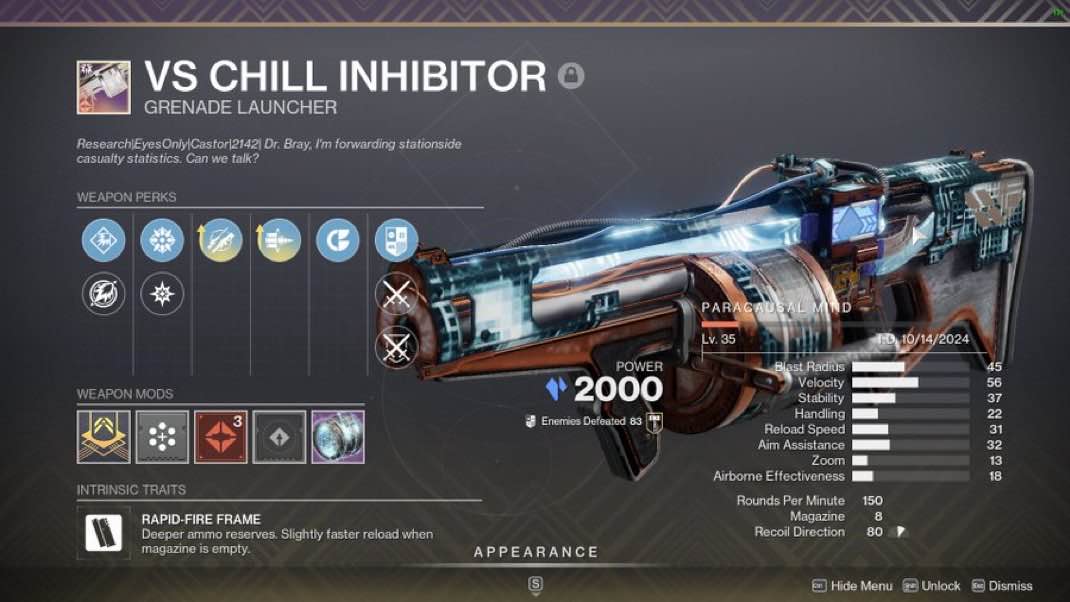 ➡️VS Chill Inhibitor – Countermass + Spike Grenades + Envious Arsenal + Bait and Switch + Reload MWNote: Dungeon related weapons will require Dungeon ownership, and at least one Dungeon completion.